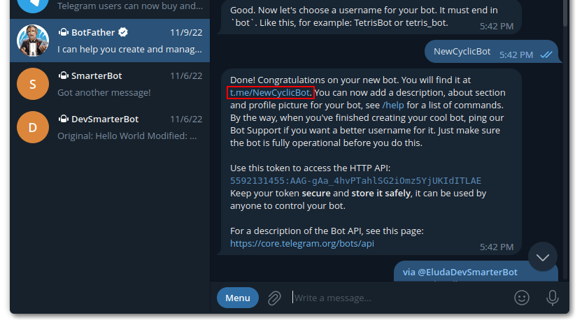 Connecting your Telegram bot to your Cyclic server