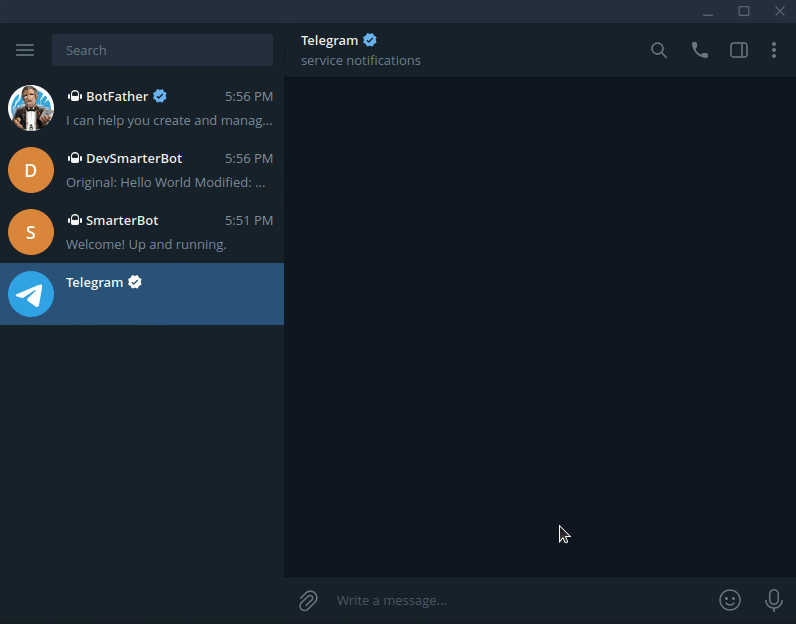 And boom! You’ve got yourself a dead-simple bot running on your computer. You can test-it out by sending it a message on Telegram; you may want to follow the link previously given to you by @BotFather.